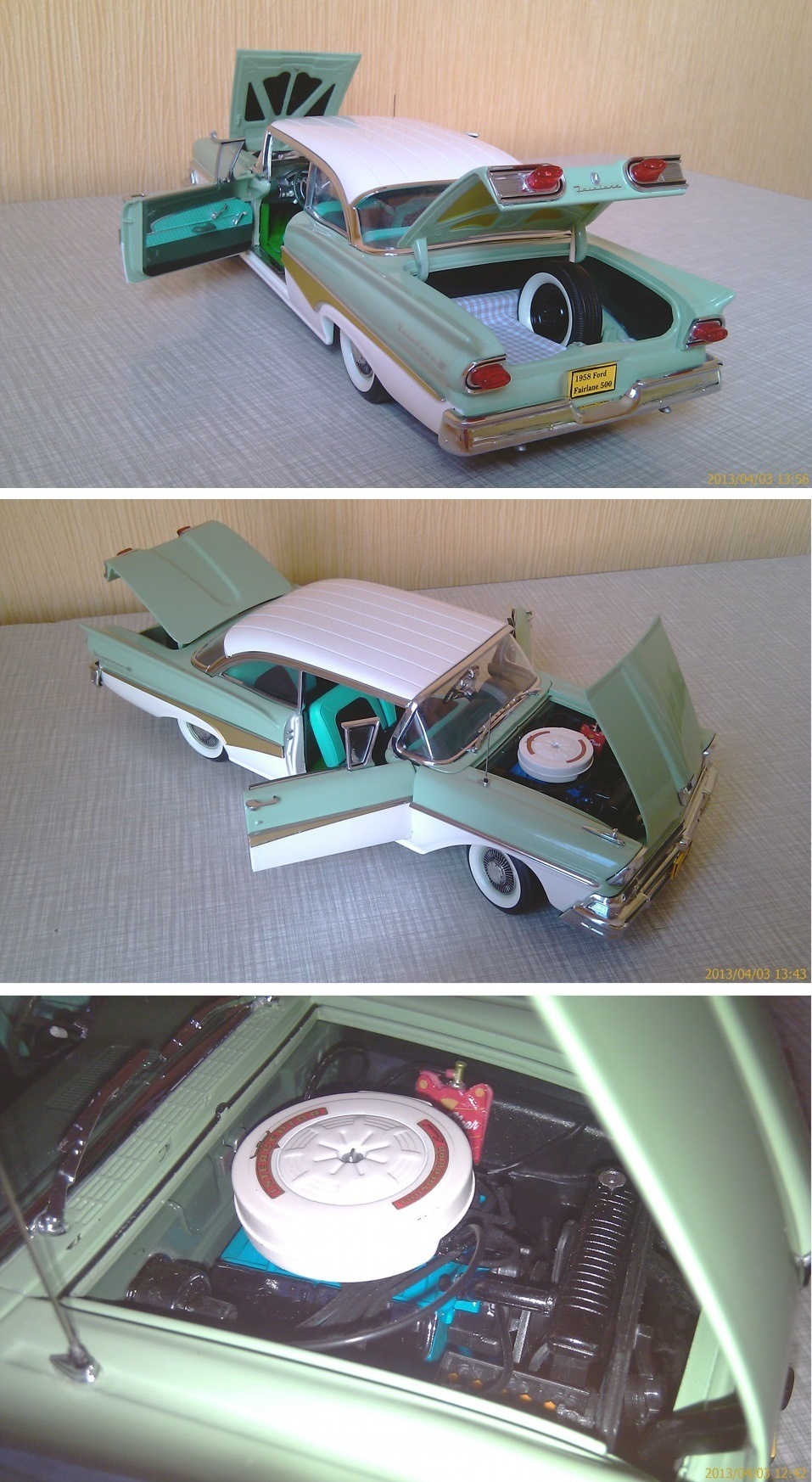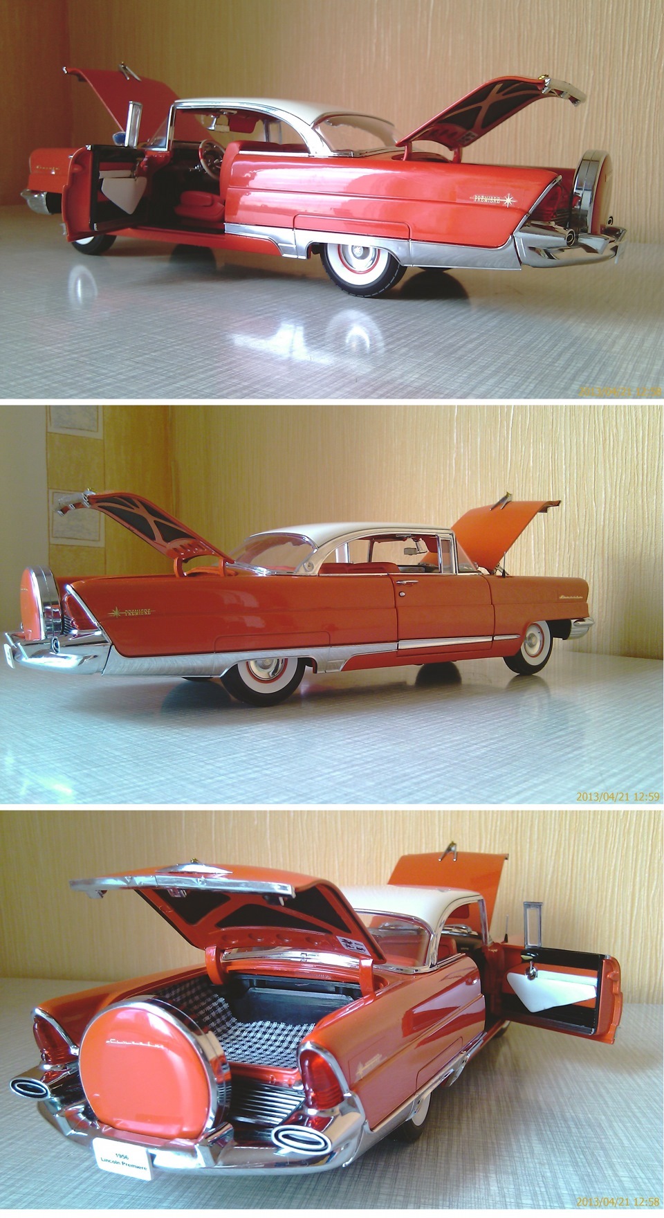 Накопилось вот некоторое количество моделей от Sun Star. Позавчера прикупил юбилейную, десятую — Lincoln Premiere 1956 года. Теперь осталось только ждать уже проанонсированных Plymouth Fury и Dodge Custom Royal Lancer с закрытими кузовами и развлекаться фотосетами.