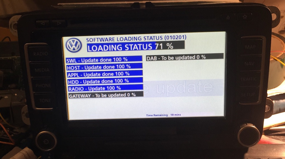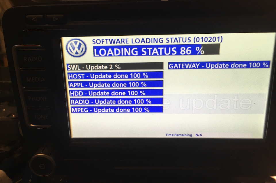 Суть проблемы — программные проблемы, и для ремонта нужно обновить сию поделку немецких мастеров. А для этого нужно знать версию железа и софта (которые часто не совпадают с тем что на наклейке). В данном экземпляре RNS-ки версия софта была 3890 и ваговский партномер 1T0035680D: