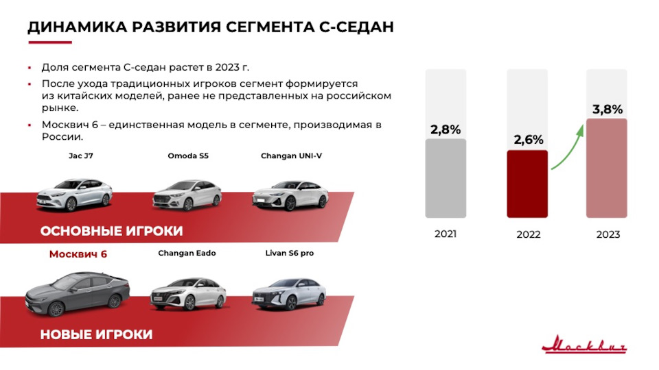 Ещё интересно было посмотреть, кого в Москвиче видят своими конкурентами для новинки. Ни с кем из них пока не успел познакомиться. Список, скорее всего, немного шире. И будет расширяться: явно смотрят в сторону этого сегмента сейчас если не все, то многие.