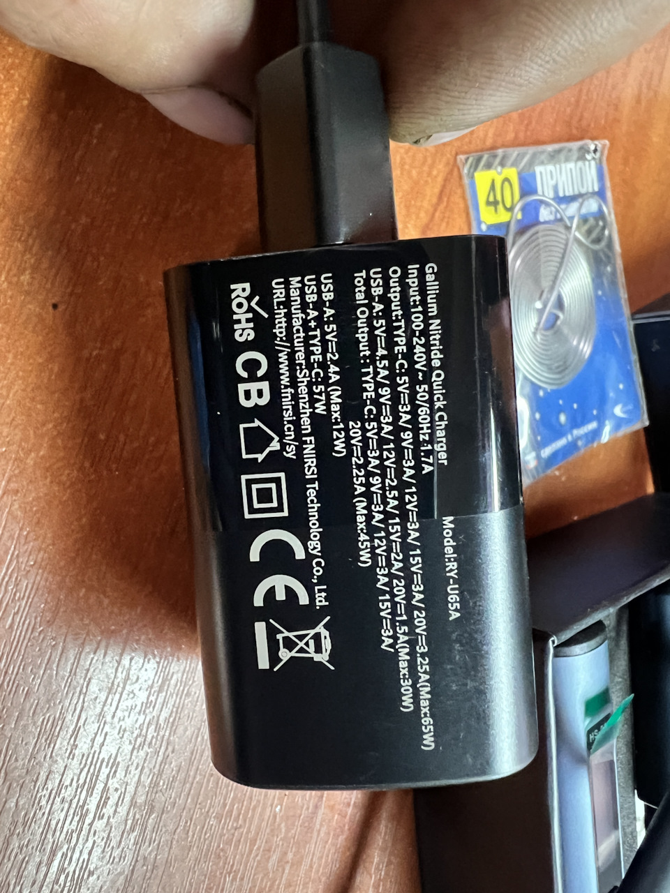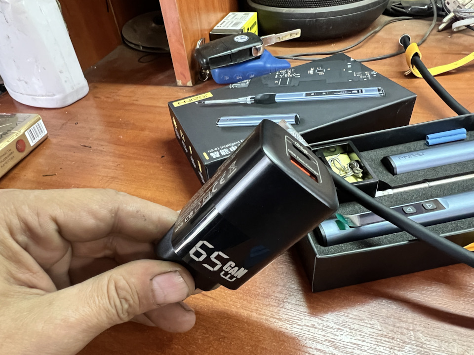Зарядка в комплекте 65w подключив его к Айфоновской зарядке 20ти ватной я смог переключить паяльник на 9вольт чтоб можно было пользоваться в машине от зарядки телефона у которой есть функция быстрой зарядки 👍👍👍