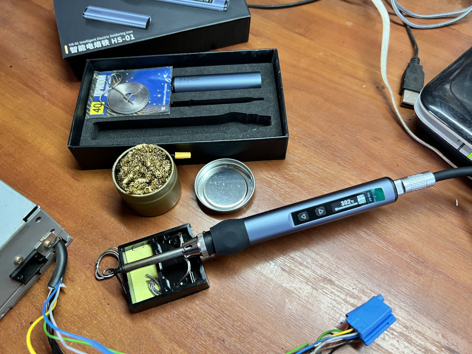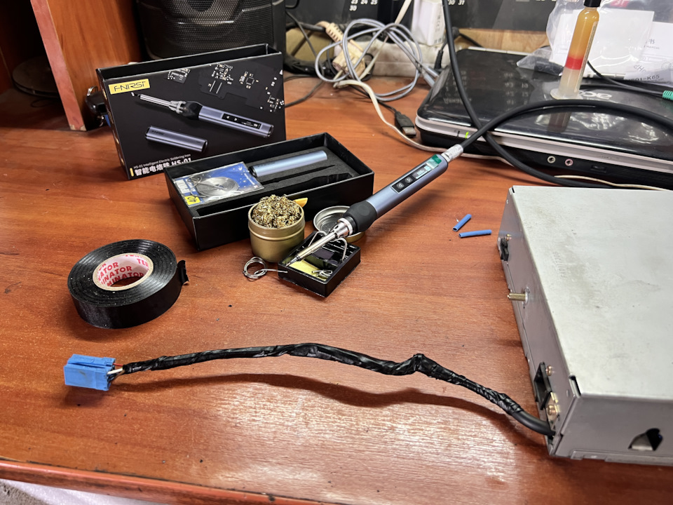 Ну и так пока решил потестировать его, восстановить обрезанный штекер от cd player к магнитоле, результат я считаю отличный, паялит очень хорошо, в руке сидит удобно, разница это как сравнивать данный паяльник со старым паяльником 😊то же самое сравнивание Мерседес и Запорожец, извините кого мог обидеть, но это так и есть😊
