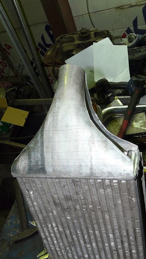 Изготовление впуска. Решено было изготовить интеркулер, так чтобы встал по месту без лишних отводов. За основу был взят кулер от субару легаси бл5. Ванночки — сплошной суперкастом! В руках Анатолия куски алюминия с легкостью превращаются в плавные округлые формы.