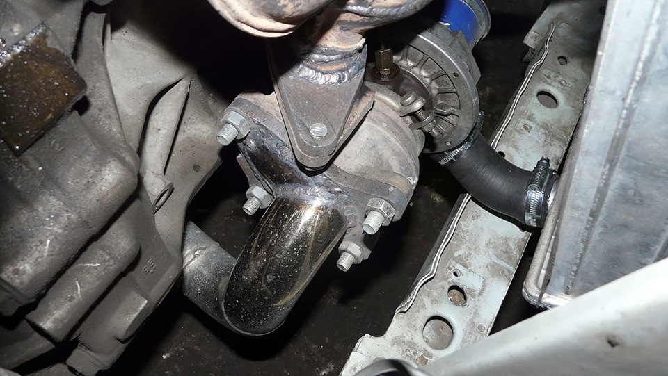 Начали с того что сварили из запасного родного коллектора укороченный вариант убрав давно прогоревший каталик, к нему фланец для турбинки. Подачу масла сделали с помощью проставки под фильтр. Из найденной в закромах elpaso нержавейки 50 мм без особых сложностей получилось сделать красивый и простой выхлоп.