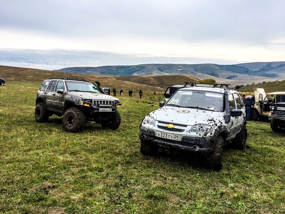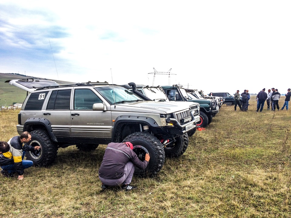 Компания собралась большая и веселая. Техника была тоже на любой вкус! Начиная от Нив, УАЗов и разномастных иноджипов, заканчивая только собранным Jeep Cherokee c мотор 5.9 на 36 Симексах с нехилым бюджетом!