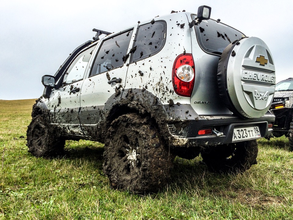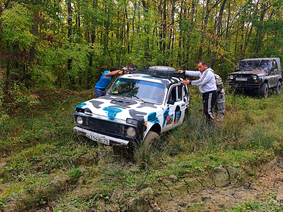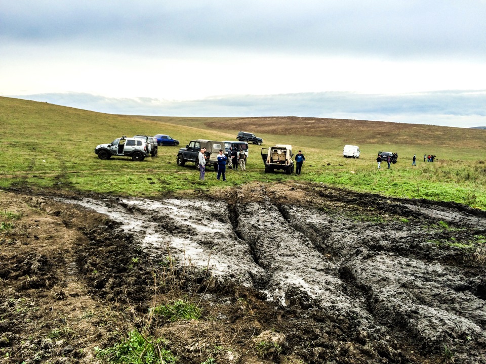 Вскоре съезжаем с асфальта и в надежде хорошенько испачкаться сбрасываем лишние атмосферы. Всем весело, УАЗоводы как всегда мелко пакостят Нивоводам.