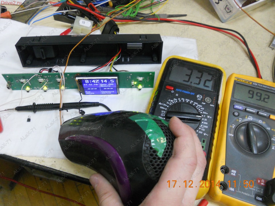 Скажу так феном прогреть я не смог, взял паяльник на 40вт. Приложив паяльник к поверхности радиатора через 2-3 минуты температура поднялась до 65градусов и застыла. При этих условиях напряжение так и было в диапазоне 3,31-3,32В на экране БК все было верно.