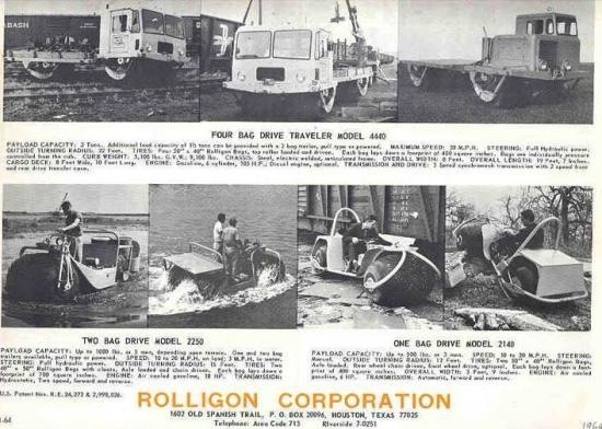 Первый прототип был построен всего за 9 недель на базе армейского грузовика. Фирма Albee Rolligon Co. была официально зарегистрирована в 1955 году. Албии как и многие ему подобные встретил целый ряд финансовых проблем и продал свою компанию Джону Холланду (John G. Holland) в 1960 г., который переместил компанию в Хьюстон (Huston), Техас, и переименовал ее в Rolligon Corporation. Компания Albee Rolligon Co. существует и в настоящее время, пытаясь продвигать идею транспортных средств на шинах низкого давления.
