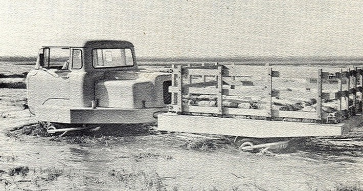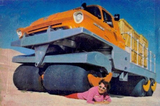 Этот необычный тип колеса изобрел человек по имени William Albee, в первую очередь эта разработка была направлена на предупреждение повреждений почвы на просторах Аляски, все мы знаем, как на нашем севере нещадно разрывают покрывающие землю мхи гусеничные тягачи. Баллоны были изготовлены по проекту мистера Albee фирмой Goodyear. Сам мистер Албии из солнечной Калифорнии утверждал, что подобная идея посетила его голову после путешествия на Аляску в 1950 году. Ему повезло увидеть, как группа эскимосов вытаскивала из воды большую и тяжелую лодку на глинистый берег, сначала он не мог поверить в то, что у них что то выйдет, но затем увидел, как по примеру колес низкого давления эскимосы использовали несколько надутых тюленьих шкур, по которым покатилась лодка.