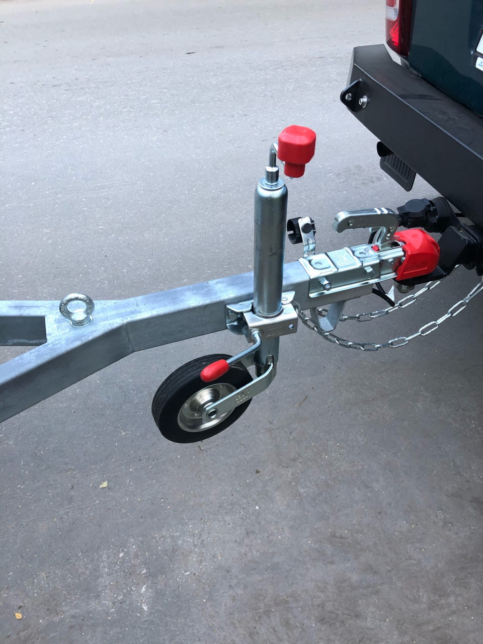 Ну и понеслось, сначала установил стеклопластиковую крышку, опорное колесо Al-CO, сзади установлены опорные стойки, внутри прицепа установил множество рымов для крепления груза.