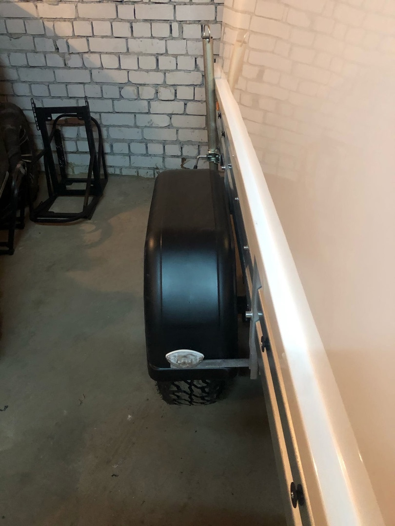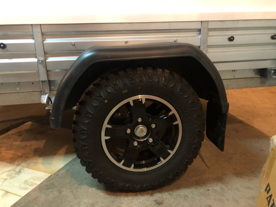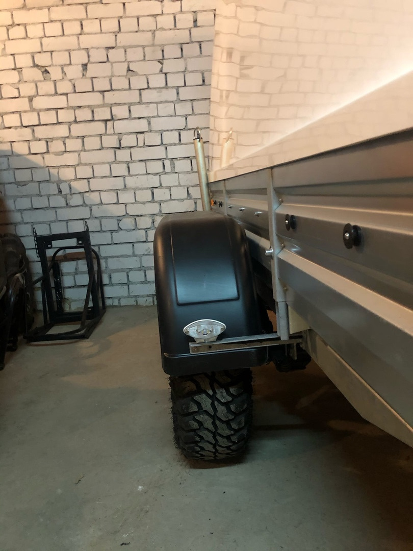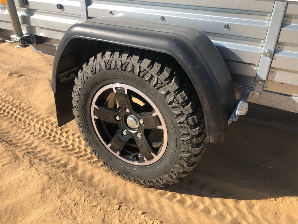 Все колеса что на авто что на прицепе в одном размере. На прицепе 2 запасных колеса. Пока в реализации сделать им штатные места. На дальняки вожу в прицепе.