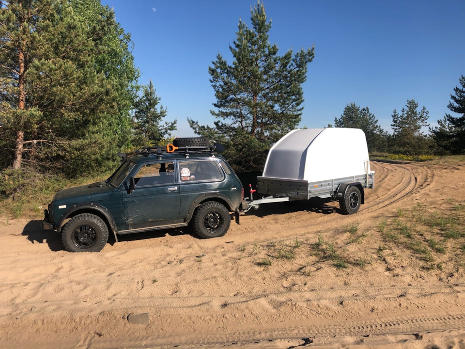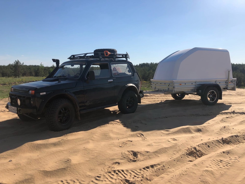 В принципе прицеп всем устраивал, не хватало только клиренса, при полной загрузке и буксировки Нивой на 29 колесах, зад прицепа того гляди и цеплялся за дорогу, при проезде по пересеченной местности.