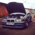 Изначально машина покупалась, просто для обычной езды по магазинам и на работу, но разные видео на ютюбе про дрифт не давали покоя, очень хотелось что-то подобное исполнить самому, да и мотор вполне себе позволяет, 2.5 почти 200 л.с. и вот оттошнив примерно 3 года, прикупил редуктор с блокировкой и тут понеслось… По началу это были тупо пятаки, но самому было приятно ощущать запах жжёной резины и пофиг что это со стороны выглядело тупо, я был доволен, и так пошло поехало, потом потихоньку научился держать машину в заносе, делать перекладки и т.д. Ну и собственно по мере опыта и машину надо дорабатывать, чтобы развиваться дальше, 2.5 мотора естественно стало мало, и понеслось ковши, ремни, подвески и т.д. и т.п… Ну и главное это мотор M60B40, его на какое-то время должно хватить))