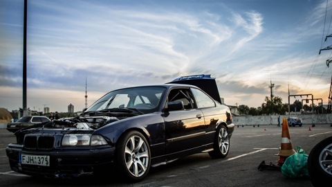 БМВ Е36 325 1992 года, попала мне в руки в 2011, полный сток кроме коротких пружин. Сначала было трудно, так как до БМВ я ездил на переднеприводных авто, но потихоньку втягиваюсь.