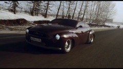 Изготовлен композитный кузов в стиле 60-х годов на тематику волга газ 21 в современной обработке и установлен на несущий кузов и раму а/м тойота кроун, в качестве дизайна были взяты и обработаны аналогичные зарубежные проекты: холден-эфиджи, линкольн-зефир и т.п.,