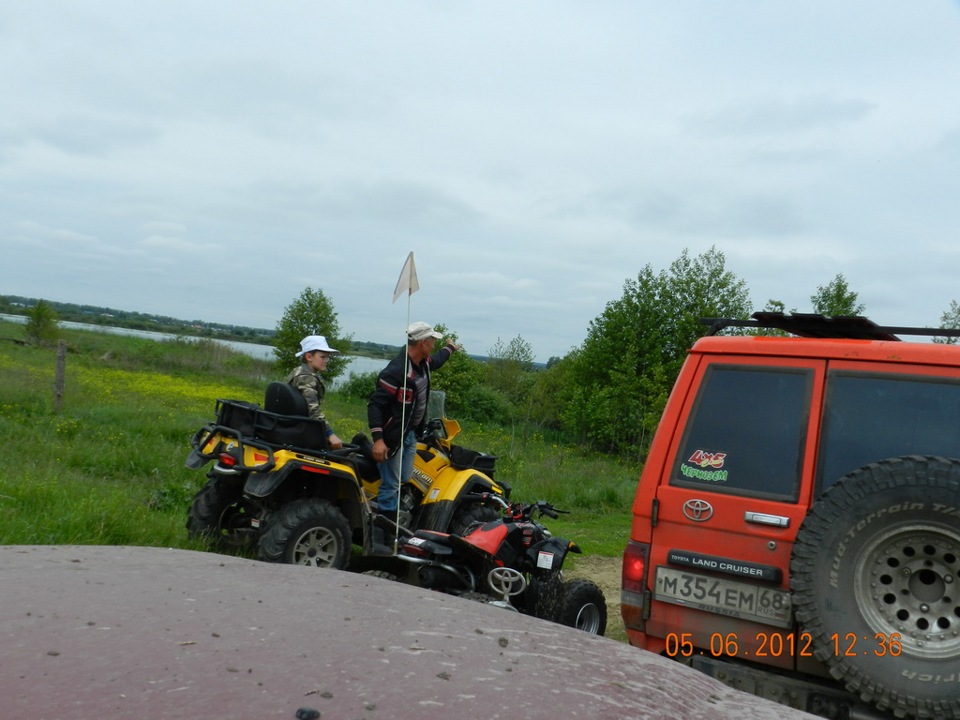 Там мы и попилили и повытаскивали немножко друг друга. Последний бросок по лугу и… мы как танки в "блицкриге" выезжаем на насторожившегося дядечку с внучком, мирно объежающих земли барина на своих верных квадроциклах.