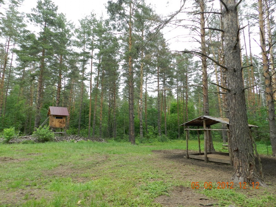 Площадка для забоя организована на месте звериных кормушек. Аккурат напротив кормушек стоит вышка, обшитая изнутри пенофолом. А справа загончик, то-ли для подранков, то-ли для потенциальных жертв, отловленных заранее…