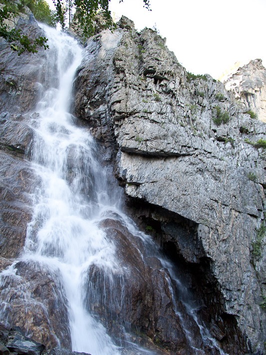 Горы еще выше. Связи почти нет. С огромной скалы падает водопад Ширлама.