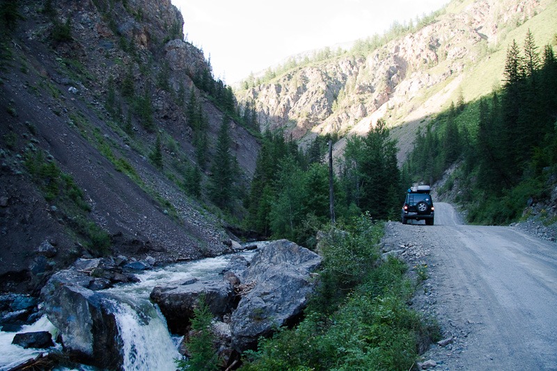 К вечеру подъезжаем к Акташу. Это почти последний оплот цивилизации на М52. Мы заправляемся по полной, и уходим в глубь Алтая, к первой цели – Телецкому озеру. Асфальт кончаеться, и начинаеться неплохой грейдер.