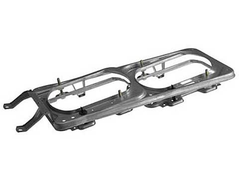 Эта конструкция (фара + две рамки) двумя пистонами и двумя регулировочными болтами крепится к общей двойной раме.