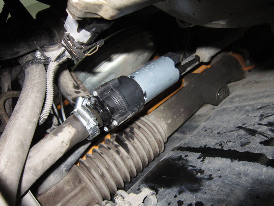 если расписать схему более подробно то — нужно в патрубок орбратки печки врезать помпу, можно ничего не удлинять как сделал я, можно вывести новый патрубок повыше закрепить помпу и от нее же новый патрубок к трубе которая идет на помпу ДВС. все элементарно в разрыв обратки ставим помпу, подключаем ее и наслаждаемся теплом!