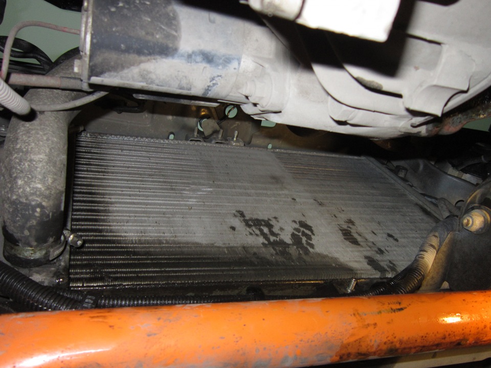 Но возникает вопрос — а как его менять ведь места в подкапотном пространстве вообще нет (я думаю обладатели такого рода автомобиля меня поймут без лишних разговоров)! Естественно полез в Инет и начал искать, скажу сразу ничего толкового не нашел, кроме того что кто-то написал что его нужно вытаскивать через низ. Решил так и пробывать, не вытаскивать же двигатель, хотя если бы не так то и вытащил бы, благо условия позволяют. Скажу вам сразу вытаскивается радиатор без проблем, как говорится глаза боятся а руки делают, главное не торопиться и все получится! Естественно сделал подробный фотоотчет, думаю обязательно пригодится, особенно у кого такие моторы в Самарах!