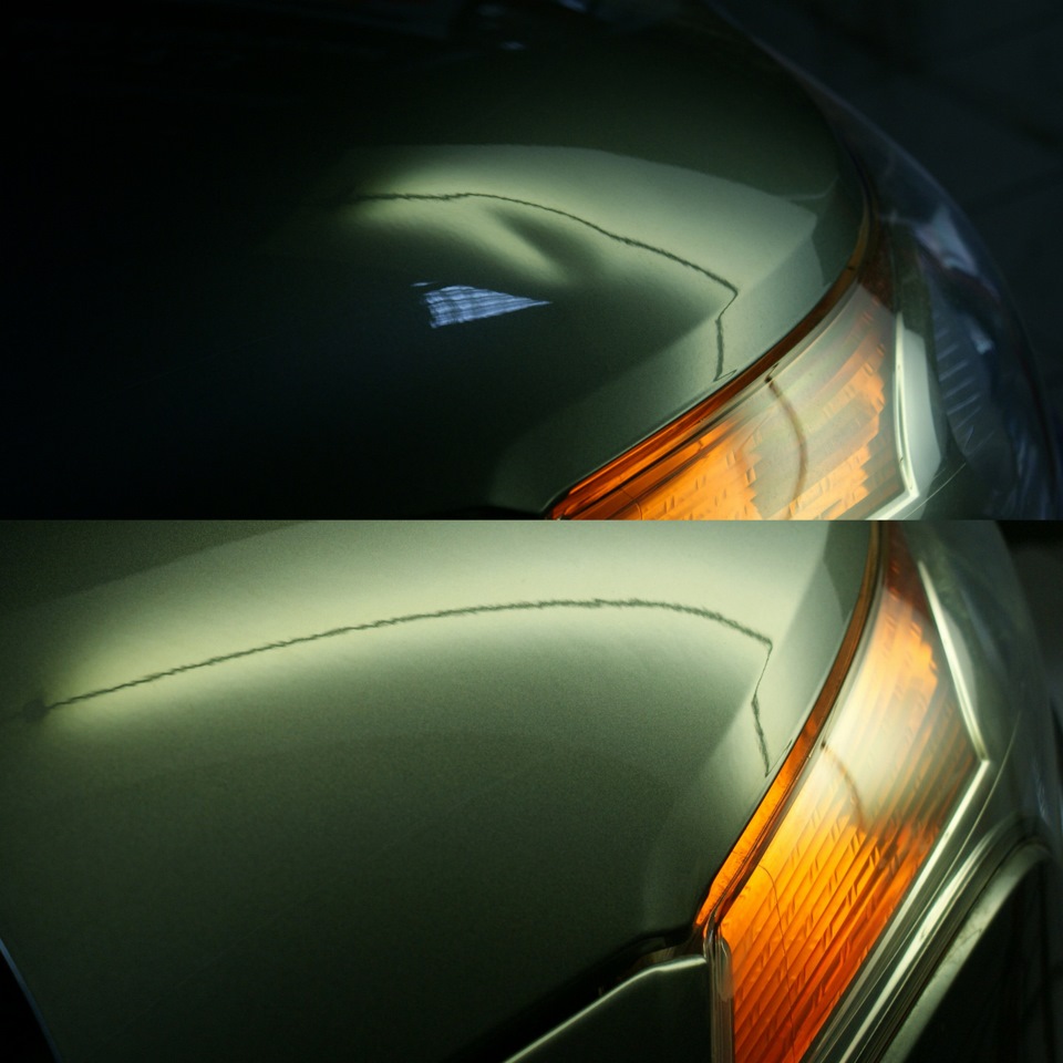 У меня тоже на капоте вмятина. Думал буду красить, но вижу что можно обойтись без покраски. Только где в Спб этим занимаются?