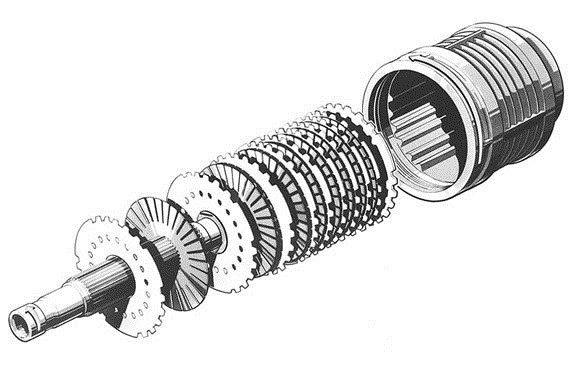 3) Серии из 29 дисков, имеющих металлические лепестки, соединненых с центральной осью (ведомые диски).