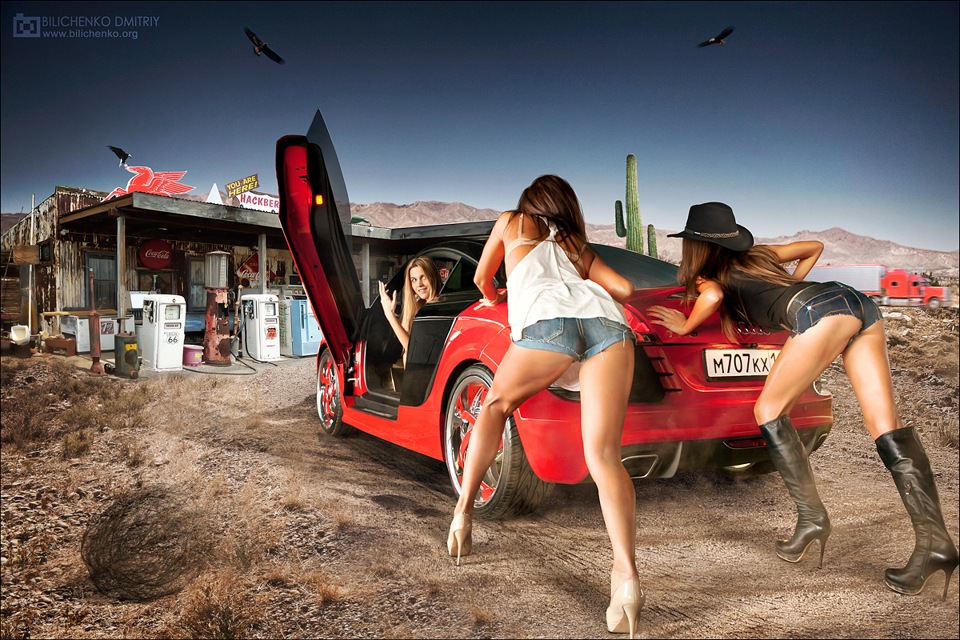 Погоня длилась довольно долго, солнце уже успело скрыться за горизонты, но R8 не хотела сдаваться, как собственно и наши героини :) Отважный полицейский даже не замечал Мексиканцев которые незаконно пересекали границу на (ЗИЛке drbroman) :) Все бы хорошо, но стрелка бензина была вновь не на стороне девушек, которые в спешки вновь не успели залить полный бак и были вынуждены остановится … дальнейшее описание происходящего думаю в комментариях не нуждается :)