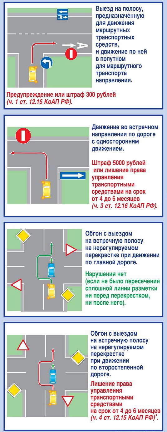 У меня сейчас у сына, ситуация как на 3 картинке в "спорной ситуации", поворачивал налево, задел левыми колесами двойную сплошную, менты сняли на видео, права отобрали, завтра суд, вот думаем как доказать, что он нарушил пункт не 12.15 ч. 4 а пункт правил 12.16 ч3 не соблюдение разметки, у него до этого не одного штрафа не было, может отделается штрафом в 5 тыс. рублей?