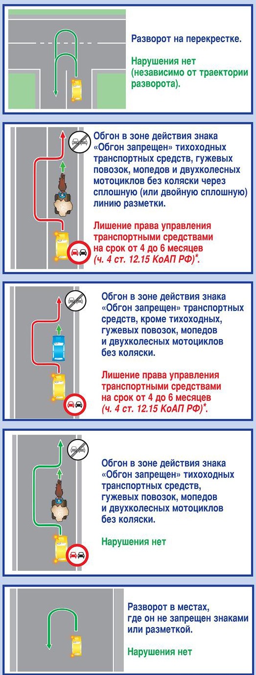 ааааа, так значит за обгон лишение ! а за разворот штраф ?