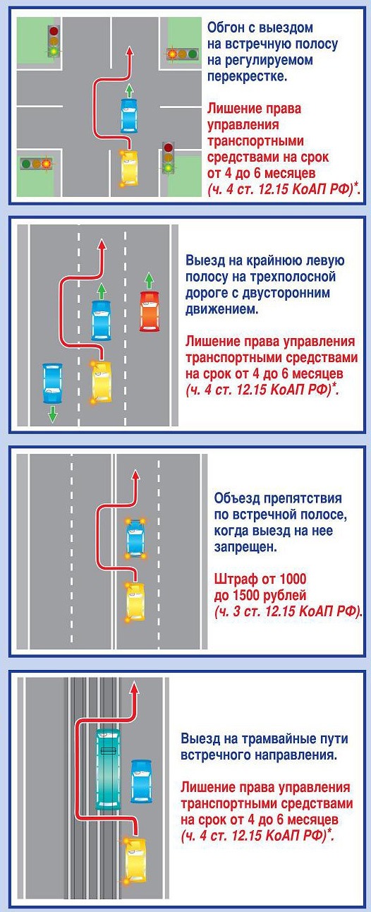Начиная с этого воскресенья выезд на трамвайные пути встречного направления, также как и выезд в нарушение ПДД на встречную полосу, будет наказываться лишением прав на срок от 4 до 6 месяцев. В настоящее время это нарушение наказывается лишь штрафом, правда немалым – в сумме от 1000 до 1500 рублей.