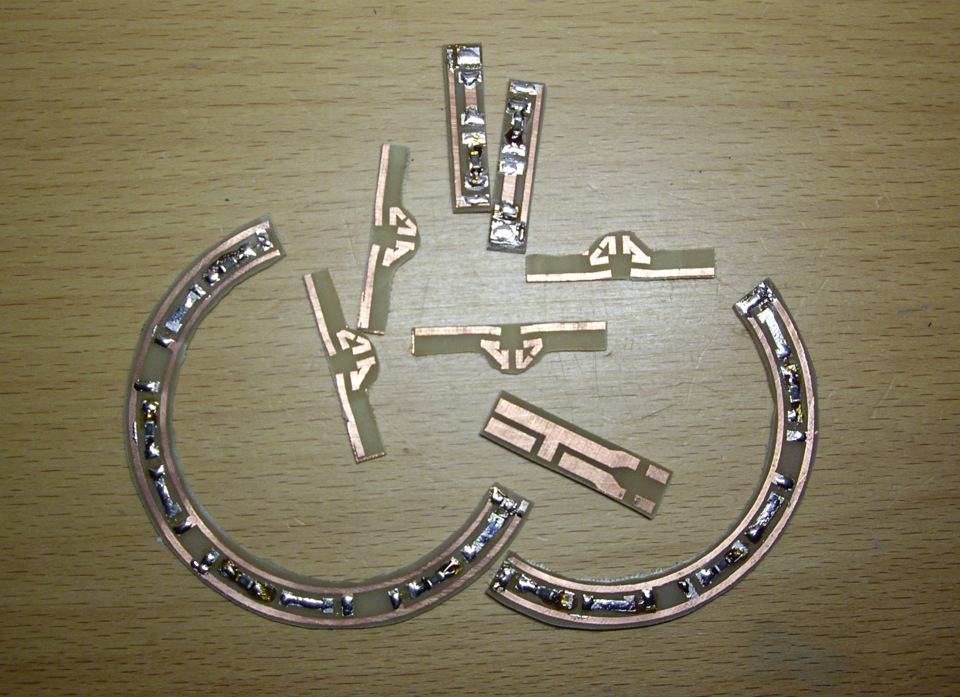 2) Снимаем шаблоны под платы, рисуем, травим, вырезаем, паяем диоды.