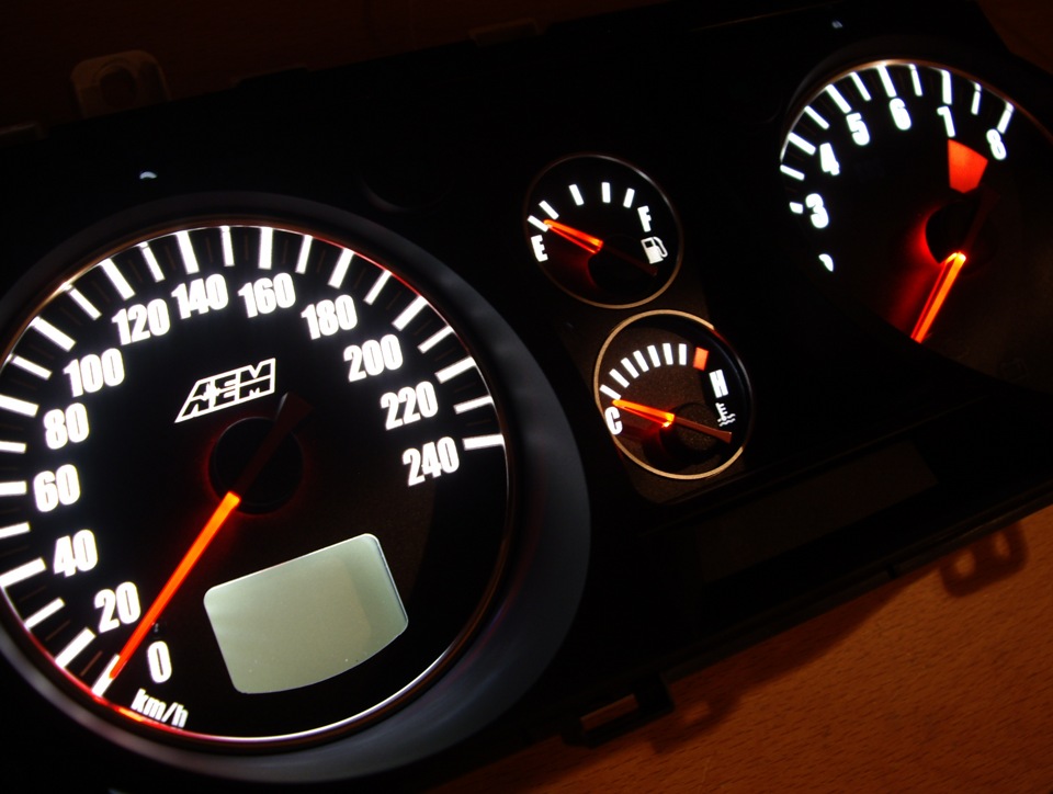 Но задача поставлена: стилизация приборной панели под дополнительные датчики AEM.