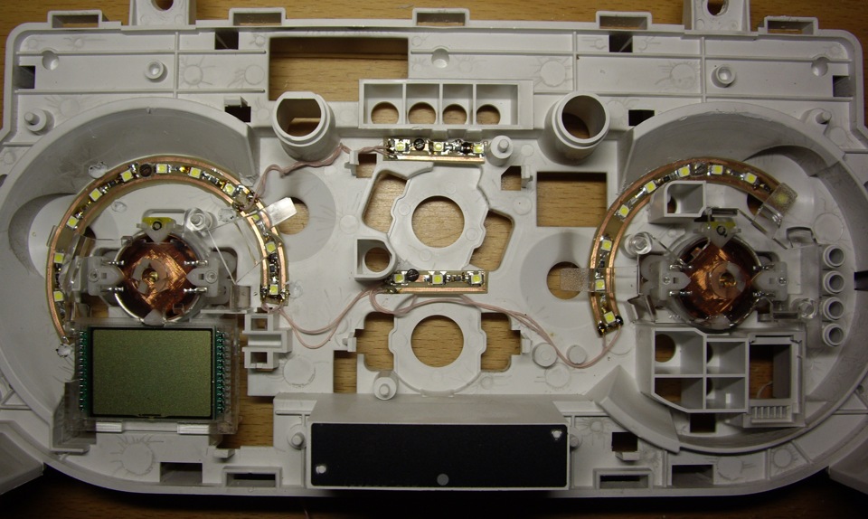 Блин тоже не нравится подсветка на таком же ауте. Пробовал перепаять диоды — из-за рельефа — равномерно не подсветишь — только такая переделка как у Вас. Мне такое не по силам :(