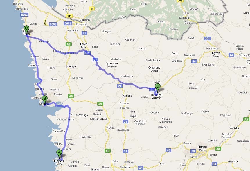 Маршрут такой: Порче — Новиград — Умаг — Мотовун — Пореч
