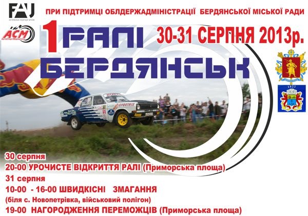 ГО «АвтоСпортМариуполь» одновременно с заключительным этапом национальной серии "Кубок Приазовья" представляет V этап Трофея ФАУ по ралли на серийных автомобилях "Ралли Бердянск 2013".