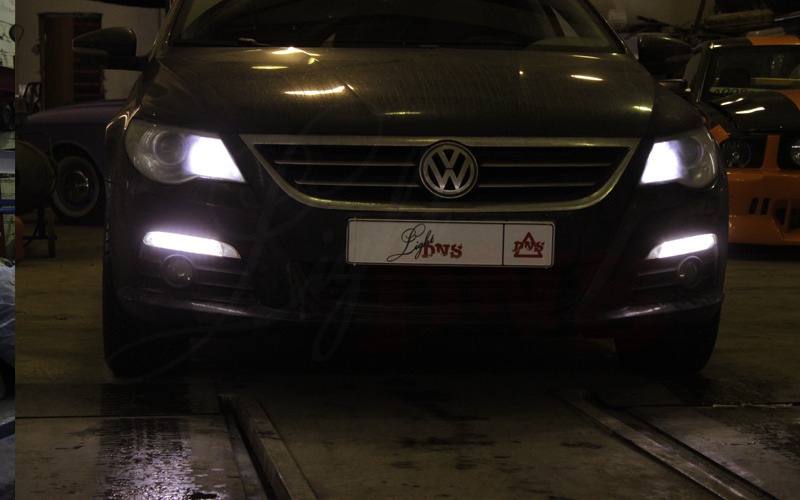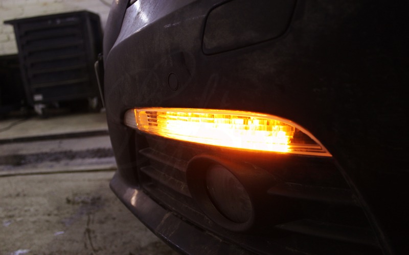 В передние фонари указателей поворота установлены светодиодные модули DRL, собранные на базе 16-гранных отражателей Q-Block с использованием 1-ваттных светодиодов на алюминиевых платах. Параллельно этим модулям установлены светодиодные полоски указателей поворота из светодиодов HyperFlux 2chip.