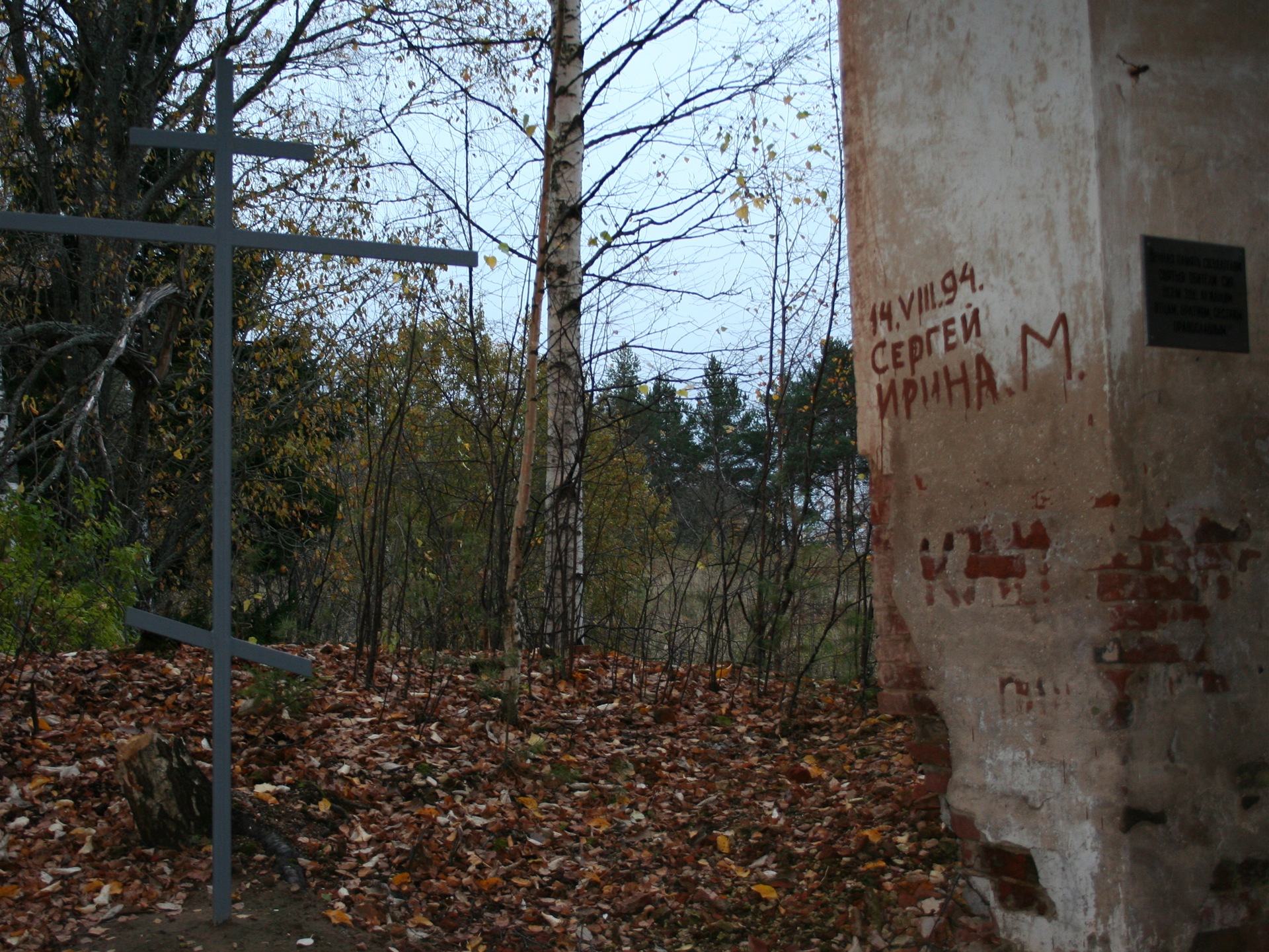 Посоветовавшись с отцом и с благословения батюшки мы с отцом возвели небольшой поклонный крест в храме и установили памятную табличку… Бог хранит и слава еме они все еще на месте…