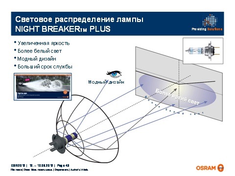 По заявлениею производителя, лампа 64210NBP даёт до 90 % больше света на дороге (по сравнению со стандартными галогенными лампами).