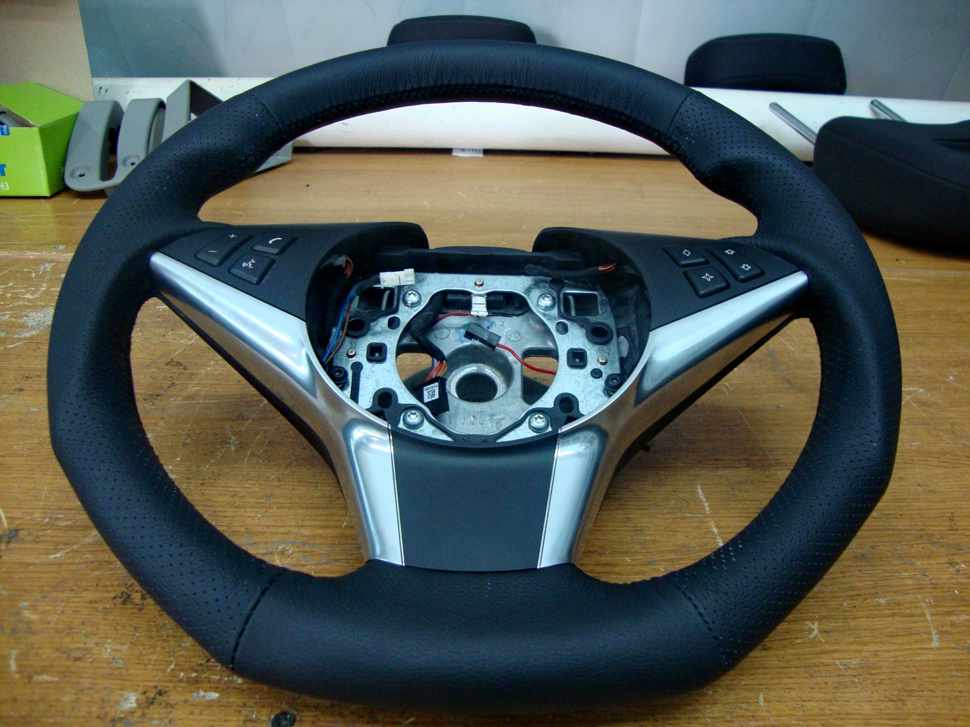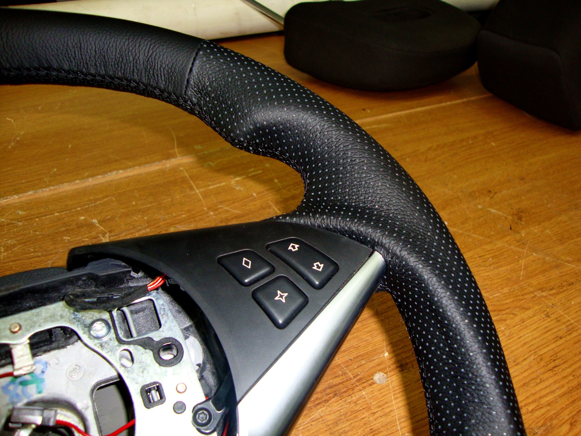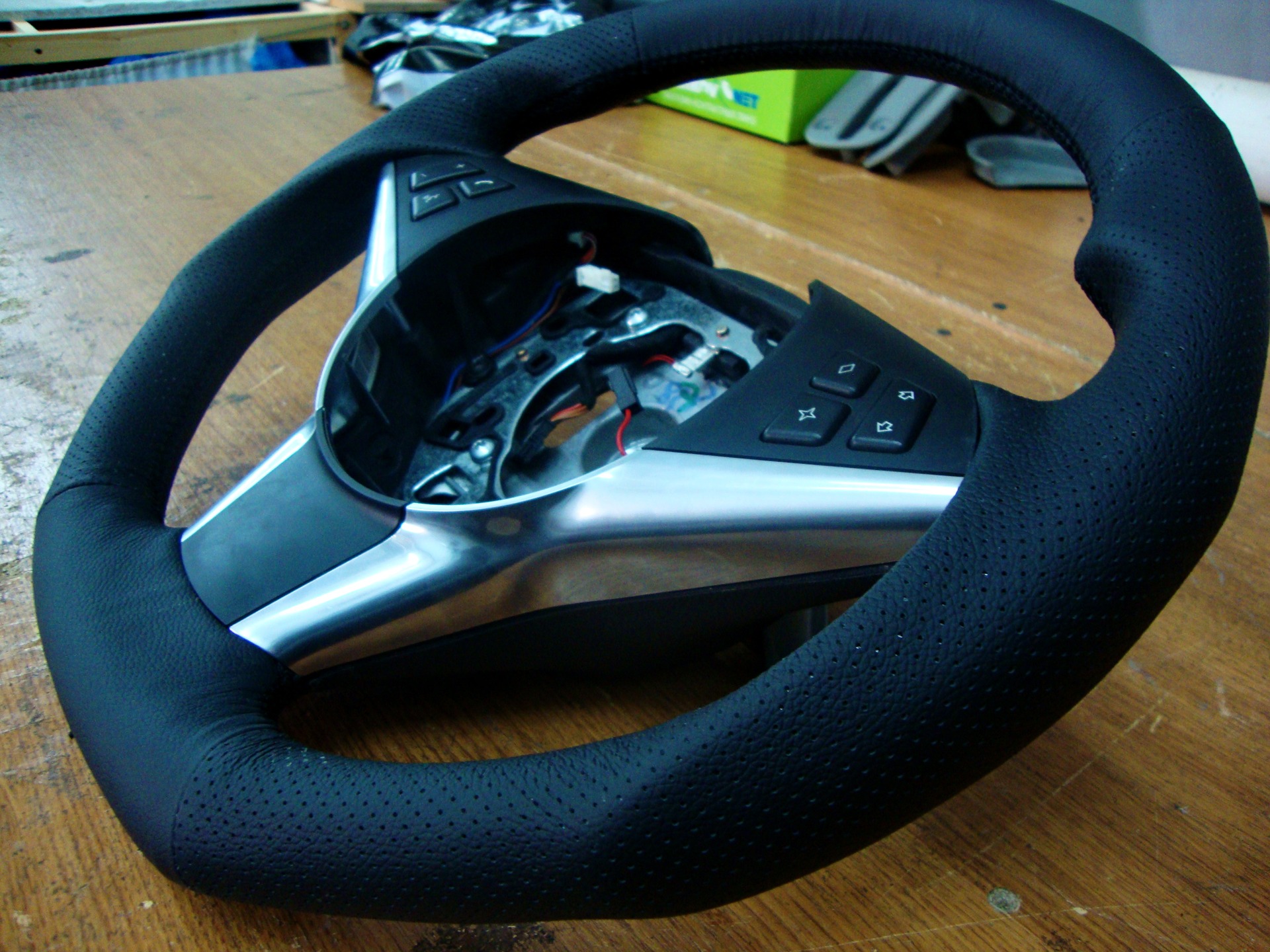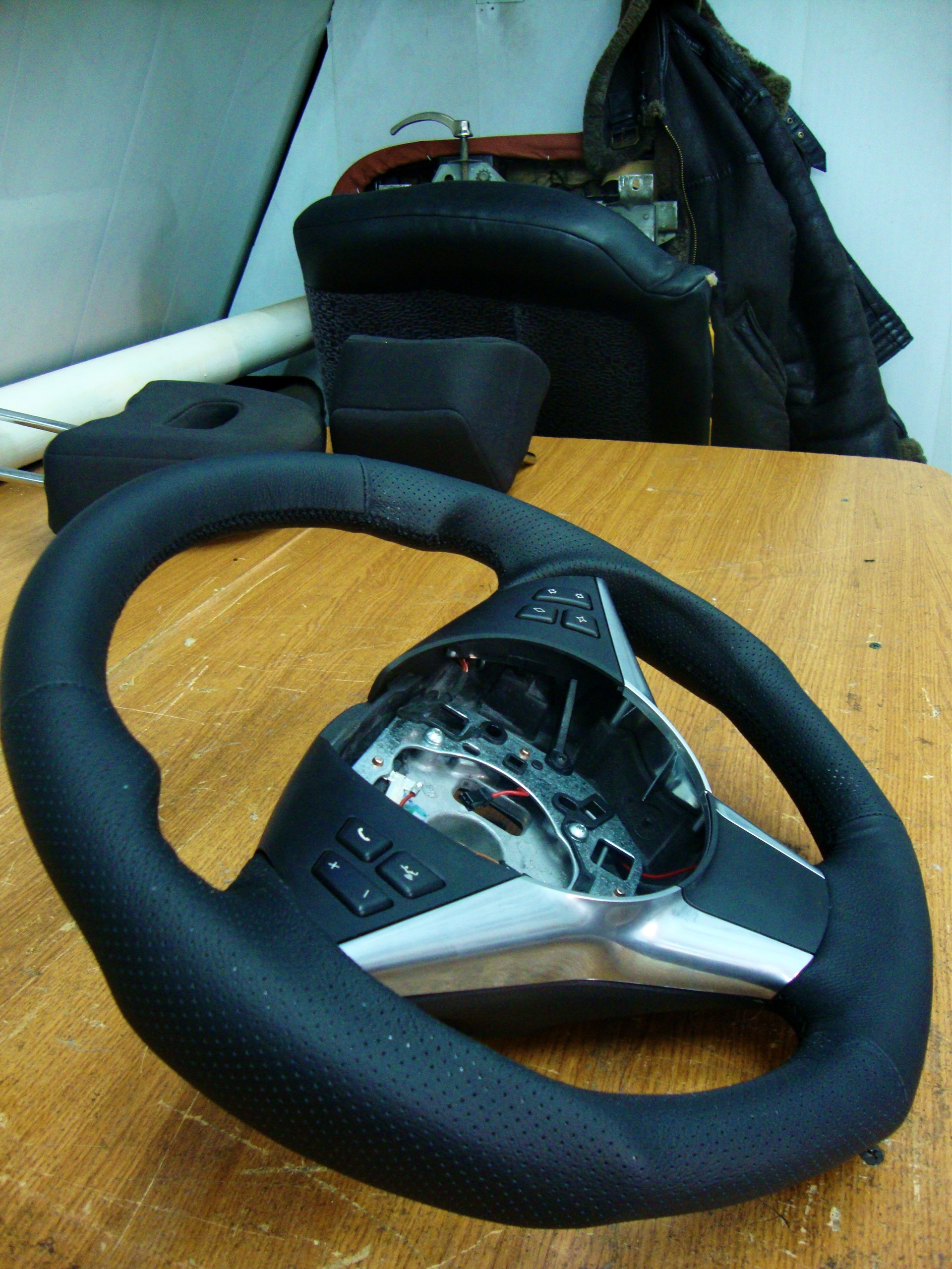 Сегодня доделали и поставили руль с анатомией. Сложность в работе была в том, что у руля есть оригинальный подогрев руля…т.е. при демонтаже родной кожи и изменения анатомии, была поставлена задача номер 1! При любом раскладе сохранить подогрев. Задача решалась сложно, но в конце в концов была выполнена :)
