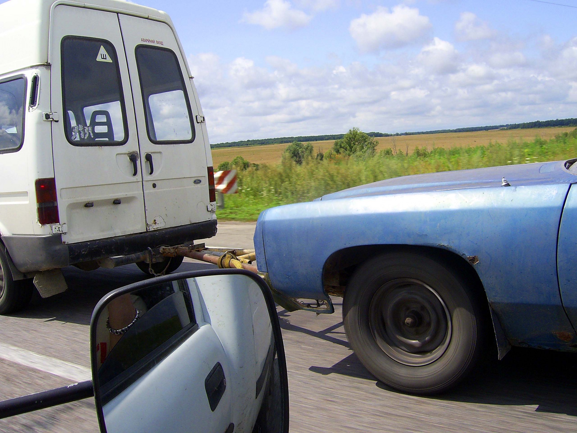 Эвакуатор самый дешевый нашли около 700 долларов, поездом посылать было немного дешевле и мы решили привезти ее на жесткой сцепке, сварили сцепное устройство, под размер рамы, кинули все это в Транзит и двинули в путь, доехали туда относительно быстро около 12 часов, несколько раз попадали в пробки.