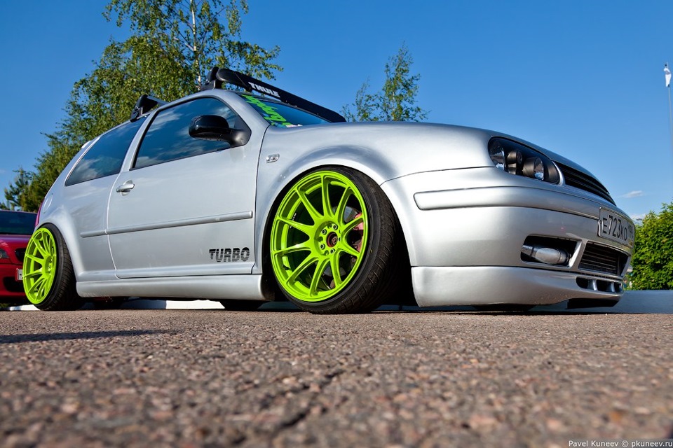 Выбор "обувки" — гарантированный способ привлечь внимание к своему автомобилю. Диски подбирать надо максимально возможного диаметра. Резину — попроще, а так как бюджет кончился еще на дисках, можно взять б\у. Если автор уже купил диски — надо приложить их к машине, подперев досками \ ящиками и сфотографировать на телефон. Соосность соблюдать не обязательно. Впрочем, о фотографиях уже было сказано. Если автор не уверен в выборе — надо взять побольше дисков различных моделей и цветов и устроить социологическое исследование. При этом, диапазон цен дисков может колебаться в два и более раз, как и их доступность в розничной продаже. Результаты подобных исследований, как правило, имеют равномерное распределение по всем предложенным вариантам, что, несомненно, поможет автору определиться с конкретной моделью. Отдельной строкой следует отметить вариант покупки сильно уезженых, но "легендарных" дисков, которые в 90-х привезли моряки из Японии, отбив у самураев в неравном бою, затем они сменили множество владельцев, катаясь по всей России от Владивостока до Мурманска, попадая в ямы, наскакивая на бордюры и просто ржавея в сыром гараже. Состояние их, как правило, плачевное. Посадочные места расточены, болтовка рассверлена (а то на тойоту спринтер не налезали), заводские краска и лак давно заменены на коррозию, глубокие царапины и вмятины. О геометрии и говорить не приходится. Главное в таких дисках — "легендарность" и низкая цена. Автор запасается различными абразивами, полиролями, электроинструментом и начинает приводить диски в порядок, "полировать полки" и прочее. А затем — красит в какой-нибудь "вырвиглазный" цвет и с гордостью водружает на свой автомобиль. Про усталость металла, скрытые напряжения в материале (после многочисленных прокаток и выравниваний на станках) автор не слышал, главное — "стиль" и "легендарность".