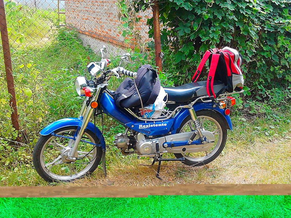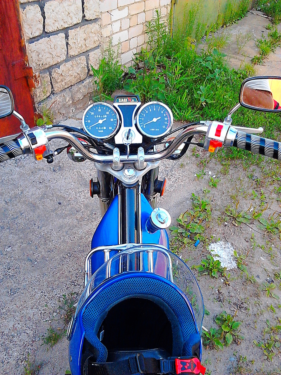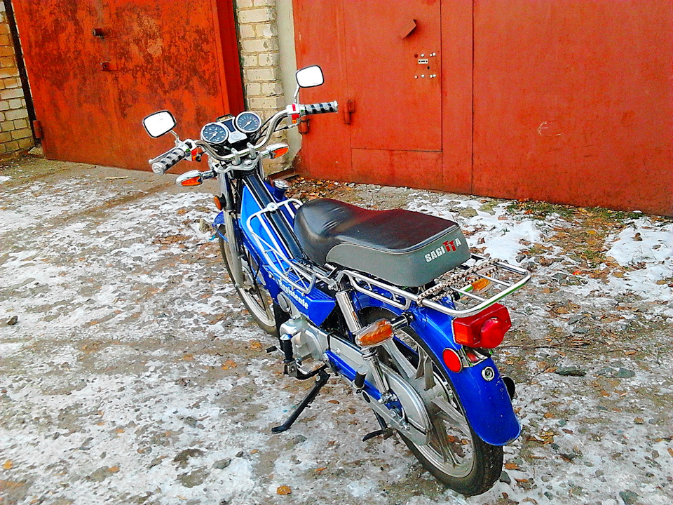 Да, и всё же мототехника мне в разы ближе автомобилей. Поездив на ЧЗ-те по городу понял что если впереди нет 30 метров свободного пространства при старте от светофора то ехать приходится на 1-2-й передачах что не совсем удобно. И тут Всевышний устроил о мне вещь — вместе с покупаемым для машины гаражом (брал у знакомого деда) мне достался китайский мопедик Sagita Resistente ZN50Q-1 синего цвета с малым пробегом, бережной эксплуатацией и небольшим дедовским "калхозом". Он не заводился, а если заводился то постоянно глох и откровенно не ехал (мои Карпаты-2 1990 г.в. после доработок ехали куда лучше). И конечно тут же последовала промывка двигателя, заправка качественным бензином, регулировка карбюратора, "раскалхоживание" аппаратика. И мопедик ответил мне взаимностью — он поехал как надо.
