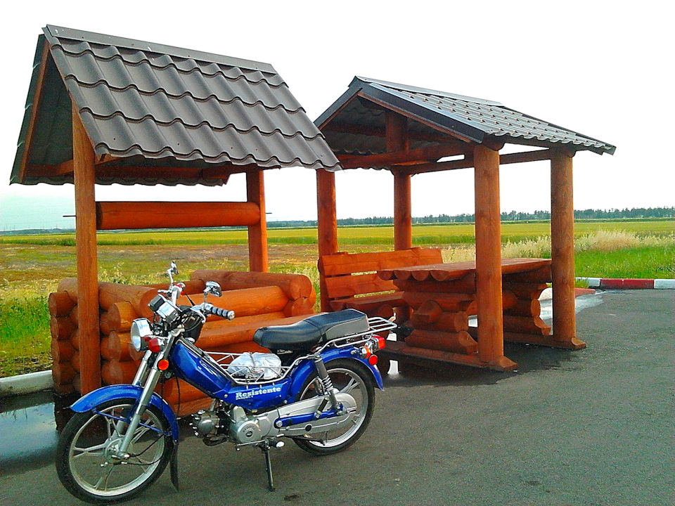 Нравилась мне тихая работа движка и ровная тяга двухклапанного четырёхтактника. Непривычно было "кабовское" переключение передач "вниз по кругу" но после привыкания оценил это преимущество при езде по городу. И всё хорошо вроде но — Китай есть Китай и вскоре последовала замена цепи. После чего — снова езда "везде и всюду"- на работу, по делам, в магазины, на дачи-огороды… радует 2 багажника с возможностью крепления на них "паутины" или просто резинок с крючками.