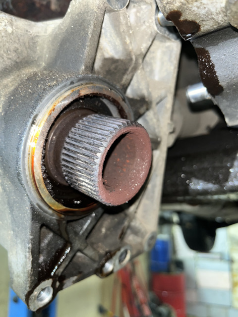 Спустя месяц после покупки решил сделать профилактику полного привода и поменять масло в мостах, и не зря. Шлицы сухие, вовремя смазали, масло тоже было не первой свежести