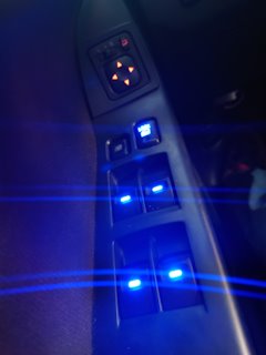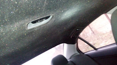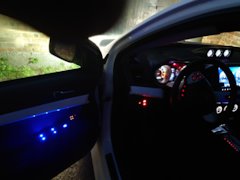 — Потолок и передние козырьки покрыты черным флеком. Ручки и фонари покрашены в черный цвет, светодиодные лампочки в освещении салона.