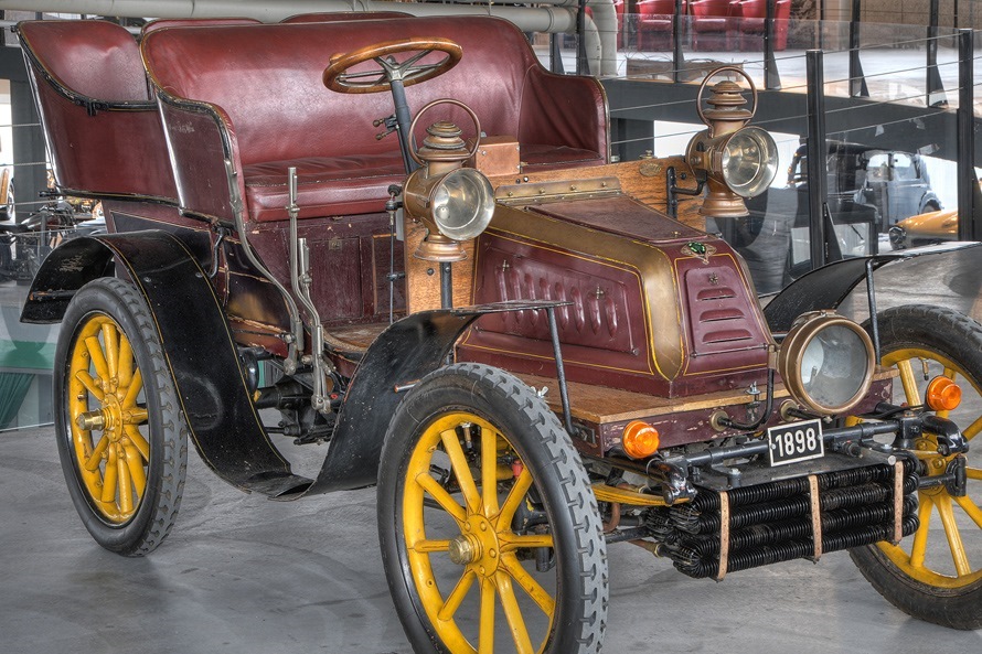 До своего первого автомобиля они шли три года, когда на выставке безлошадного транспорта они выставили двухместный автомобиль изготовленный из рам велосипедов и установленным на него одноцилиндровым 700 кубовым 3.5-сильным двигателем фирмы Benz. Жорж в течении года усовершенствовал автомобиль в частности систему зажигания и ременную передачу, однако он понимает, что автомобили сделали рывок вперёд и его конструкция устарела. Попутно Жорж с Максом экспериментируют с электротягой и строят прототип с цепной передачей, у бензиновой машины он был ременной, батареи они установили под сидением, а мотором можно было управлять при помощи 3х ступенчатой трансмиссии, которая имела фиксированные скорости, на 3й передаче машина могла разгоняться до 20 км в час.