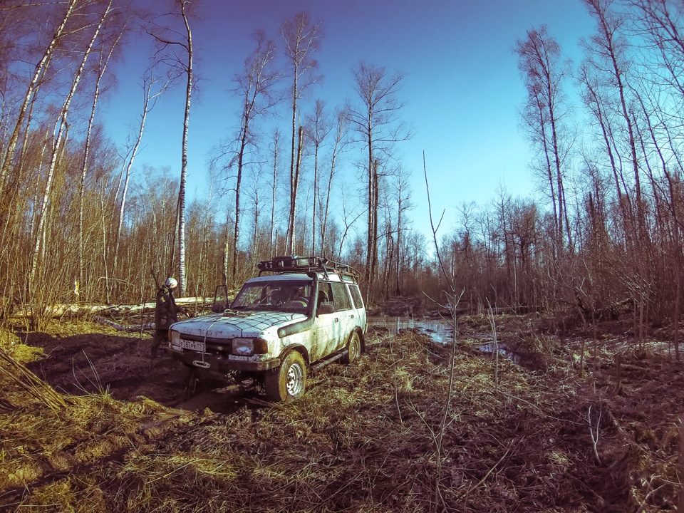Лендровер садится с каждым разом всё крепче, деревья практически полностью исчезают, метод "тросом за дерево, нажимаем и держим кнопочку" перестает работать, выдернуть всё сложнее.