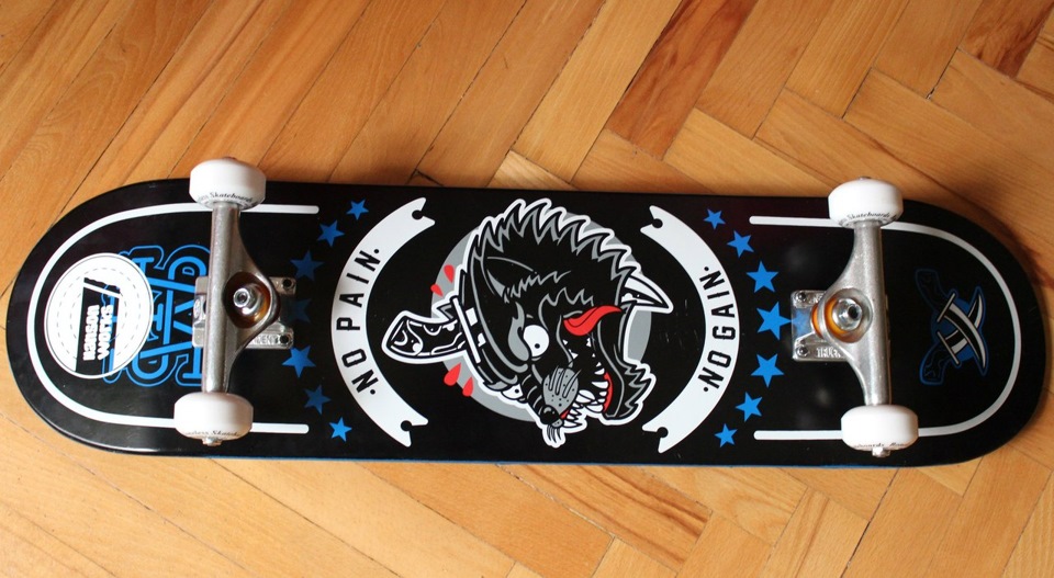 Сам уж давно не катаю, но как-то раз зашел в скейтшоп и вместо кед купил деку со шкурой, а остальное валялось дома без дела) До сих пор стоит в коридоре, изредка вытаскиваю ее и ставлю новые ссадины на тело)