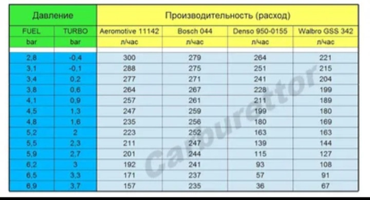 Понятное дело, что производительность форсунок и давление в топливных рампах — разное.